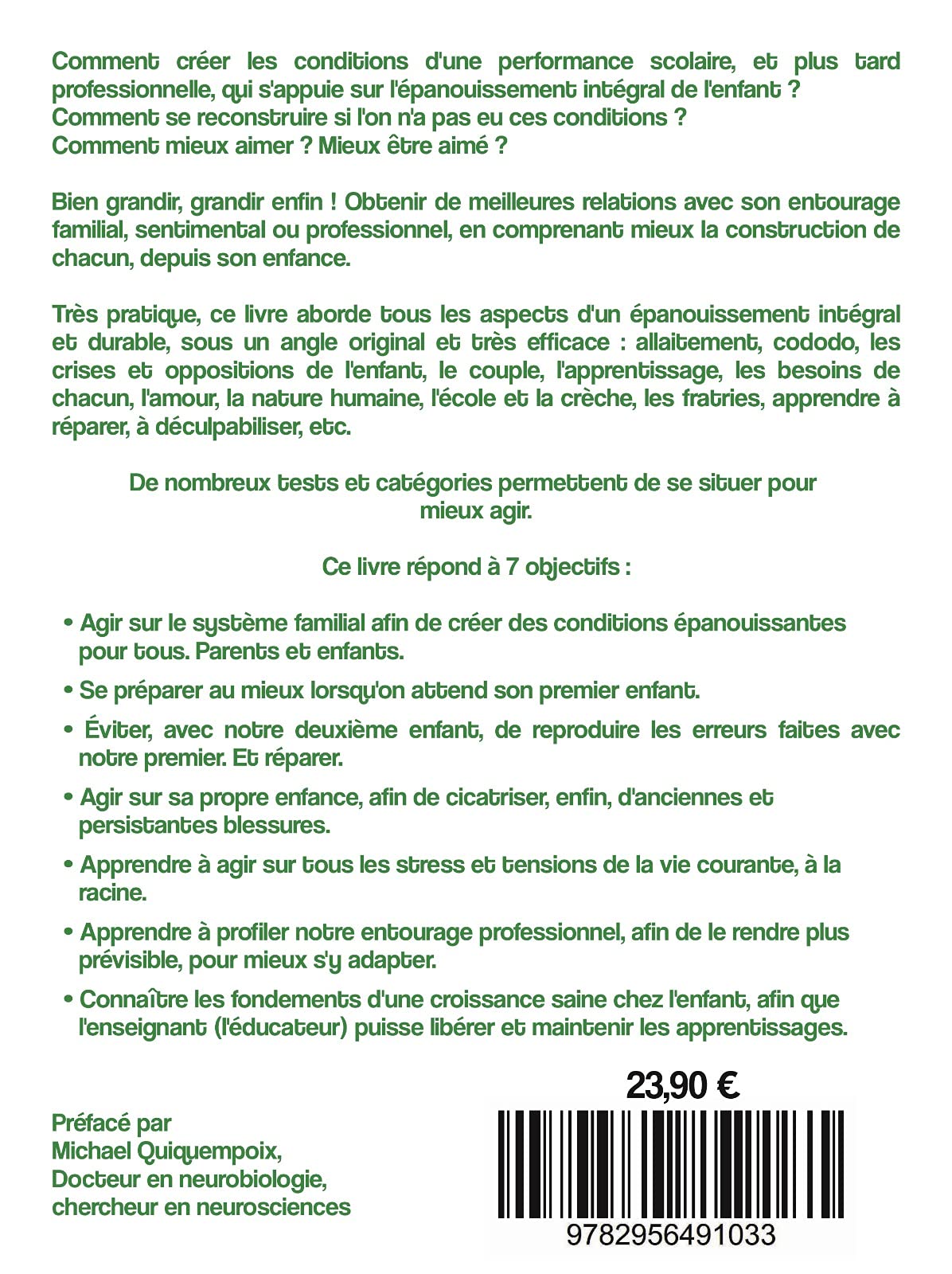 Et si vous n’avez pas (encore) d’enfant, c’est votre propre construction qui est ainsi rendue transparente; dans ce livre. Vous comprendrez bien mieux les impasses affectives, relationnelles, professionnelles, qui sont votre quotidien, ou qui reviennent en boucle régulièrement.